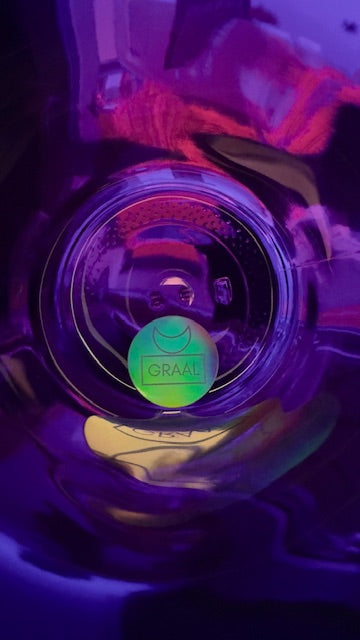 Color and contrast: Although the glass is purple, the laser engraving removes the surface layer, creating an effect that can range from a white or transparent contrast with the purple to a darker effect, depending on the depth of the engraving. The contrast between the logo and the purple glass color can be enhanced by the chosen technique, further highlighting the design.