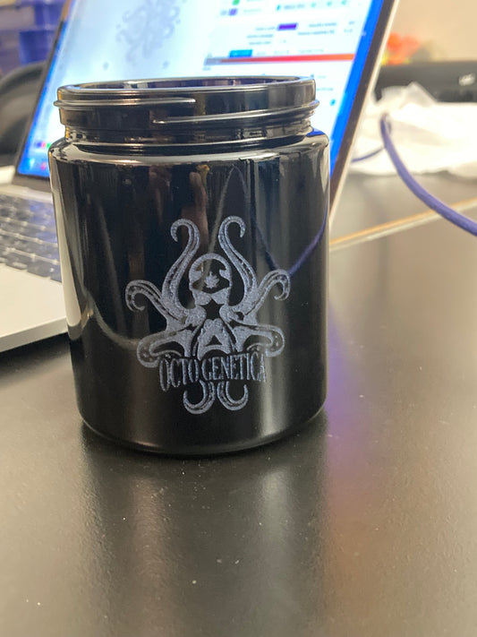 CUSTOM GRAAL Jar in Violet Glass with Laser Engraving of a Custom Logo